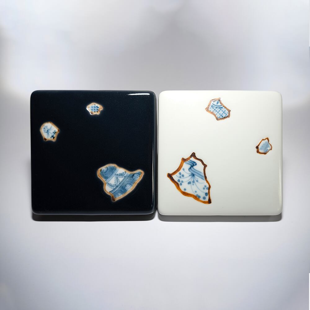 陶片のかけらを使用しているため、色合いや配置が一点ずつ異なります。